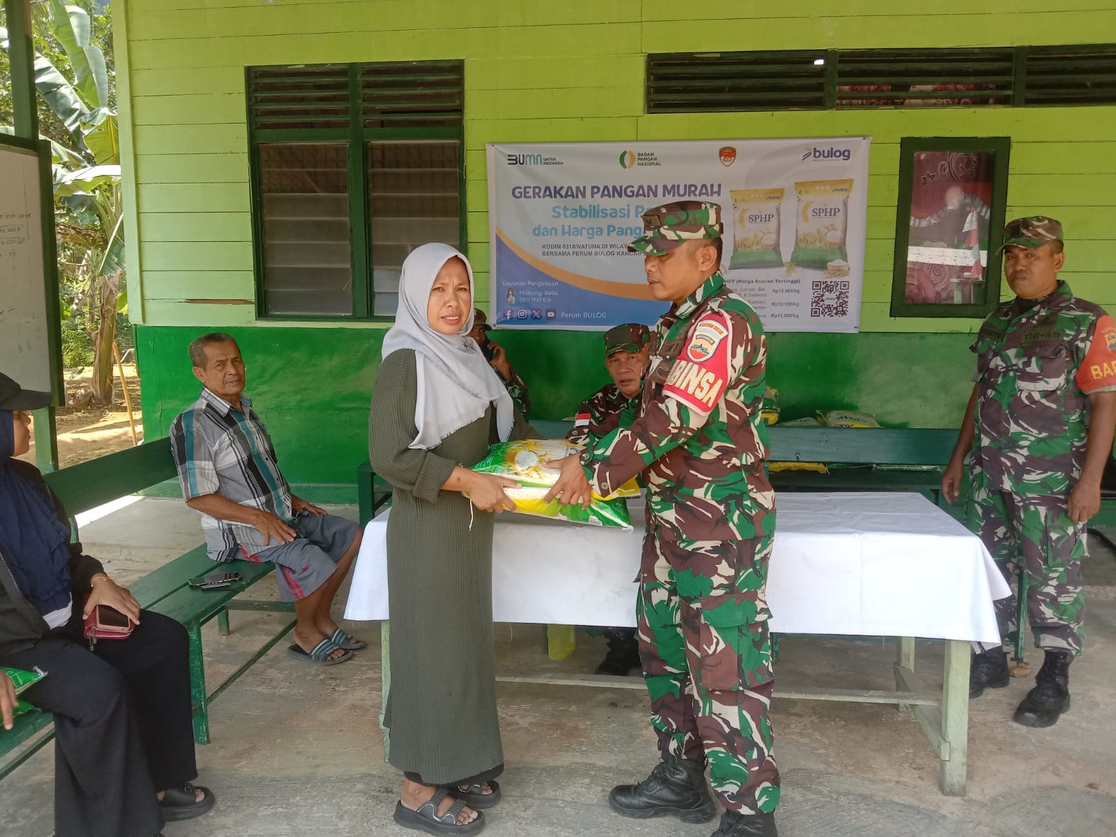 HARIANMEMOKEPRI.COM – Koramil 04/Letung, Kodim 0318/Natuna melaksanakan kegiatan Gerakan Pangan Murah (GPM) dengan mendistribusikan beras Stabilisasi Pasokan dan Harga Pangan (SPHP) kemasan 5 Kg dari Bulog.