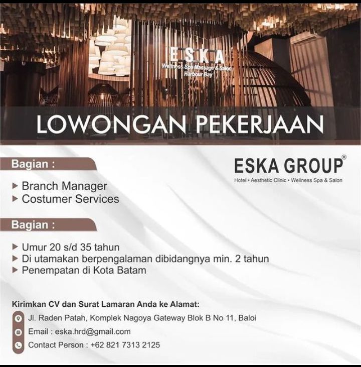 ESKA Group membuka Lowongan Kerja di Batam pada bidang pekerjaan, Branch Manager, Costumer Service