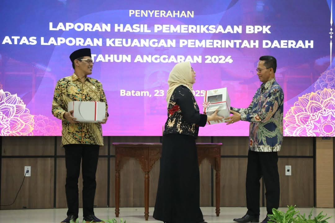 Penyerahan Laporan Hasil Pemeriksaan (LHP) dilakukan di Aula Kantor BPK Perwakilan Provinsi Kepulauan Riau, Batam center, Jumat (23/5/2025). Wali Kota Batam, Amsakar Achmad, hadir langsung menerima laporan tersebut.