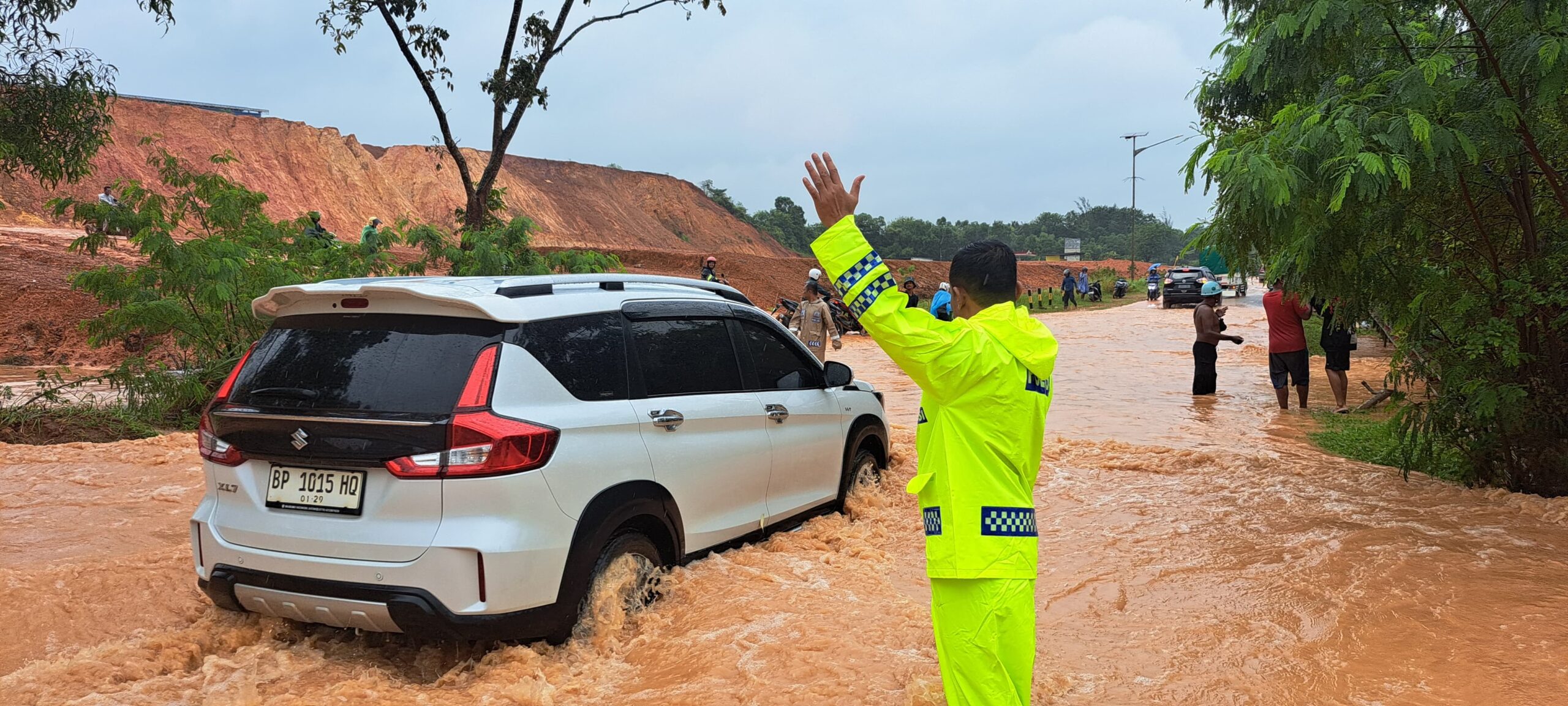 Menanggapi kondisi tersebut, personel Direktorat Lalu Lintas (Ditlantas) Polda Kepri bergerak cepat untuk mengatasi dampak banjir dan mengurai kepadatan lalu lintas.