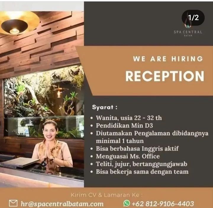 Spa Central membuka Lowongan Kerja di Batam pada bidang pekerjaan Reception