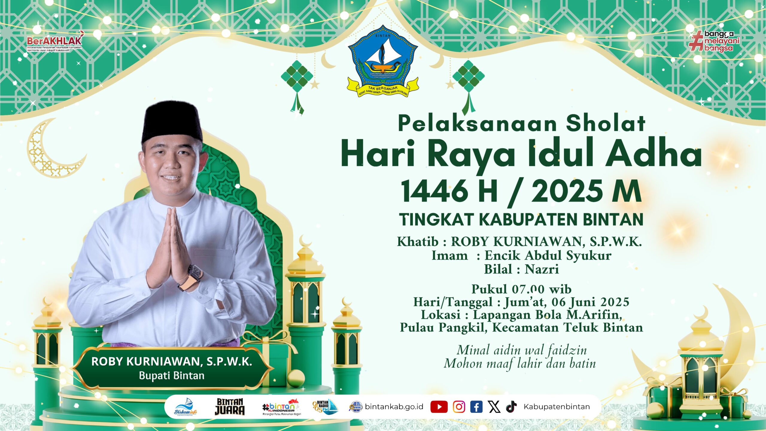 HARIANMEMOKEPRI.COM – Pemerintah Kabupaten Bintan akan menggelar Salat Sunah Idul Adha 1446 H secara berjemaah di Lapangan Bola M. Arifin, Pulau Pangkil, Kecamatan Teluk Bintan, pada Jumat, 6 Juni 2025 besok