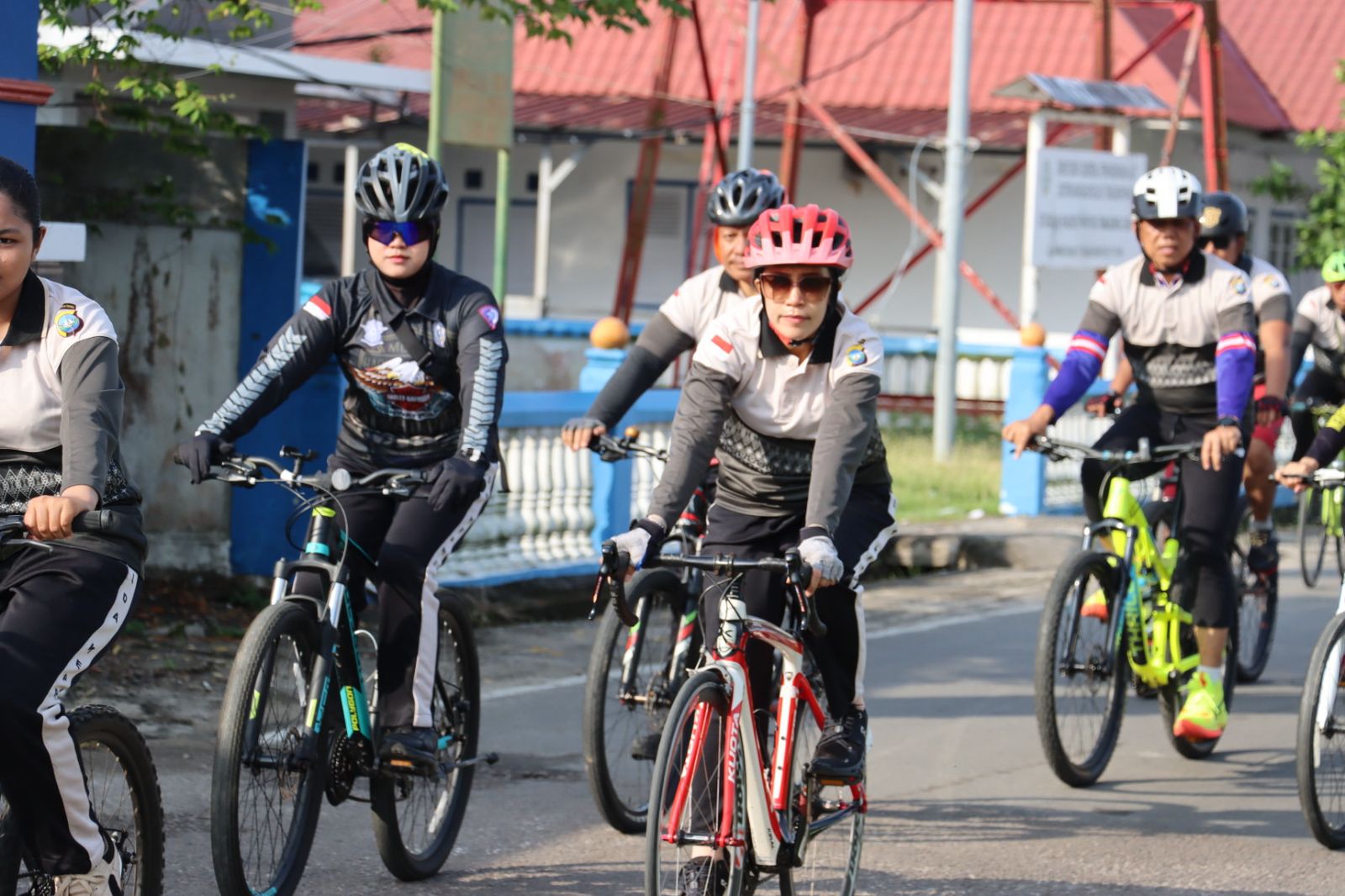 HARIANMEMOKEPRI.COM — Dalam rangka menjaga kebugaran dan mempererat tali silaturahmi antar personel, Kapolres Bintan AKBP Yunita Stevani, memimpin langsung kegiatan Gowes Kamtibmas atau patroli bersepeda di wilayah Kecamatan Bintan Utara, Sabtu (21/6/2025).