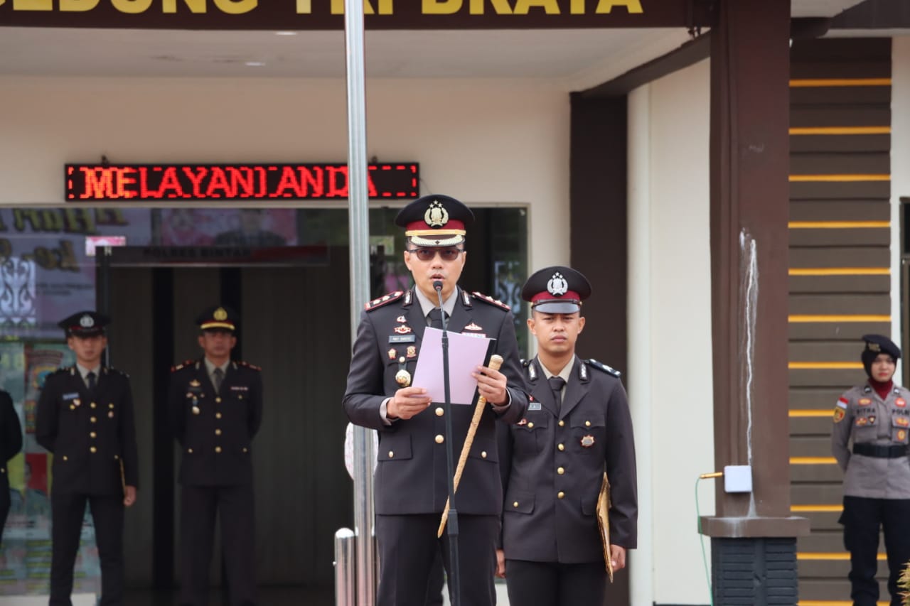 Kapolres Bintan AKBP Riky Iswoyo membacakan amanat Menteri Pemberdayaan Perempuan dan Perlindungan Anak menyampaikan bangsa ini dibangun dari fondasi perjuangan para perempuan tak pernah lekang semangatnya untuk mencapai sebuah kehidupan lebih baik bagi generasi penerus.