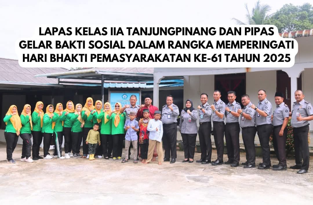 HARIANMEMOKEPRI.COM– Dalam rangka memperingati Hari Bhakti Pemasyarakatan ke-61 Tahun 2025, Lapas Kelas IIA Tanjungpinang menggelar kegiatan Bakti Sosial dipimpin langsung oleh Kalapas, Untung Cahyo Sidharto, di Panti Asuhan Bina Insani Bintan, Senin (14/04/2025).