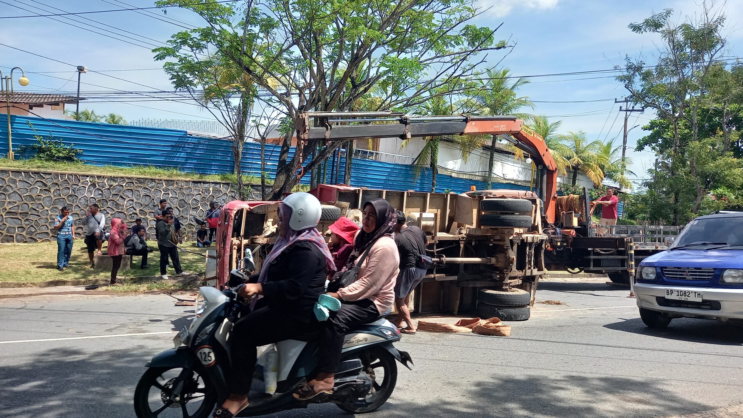 “Setibanya di depan ex Hotel Comforta, truk ini terbalik. Jika dilihat dari kondisi di lapangan, truk over kapasitas,” ujar Ipda Marbun saat ditemui di lokasi kejadian.