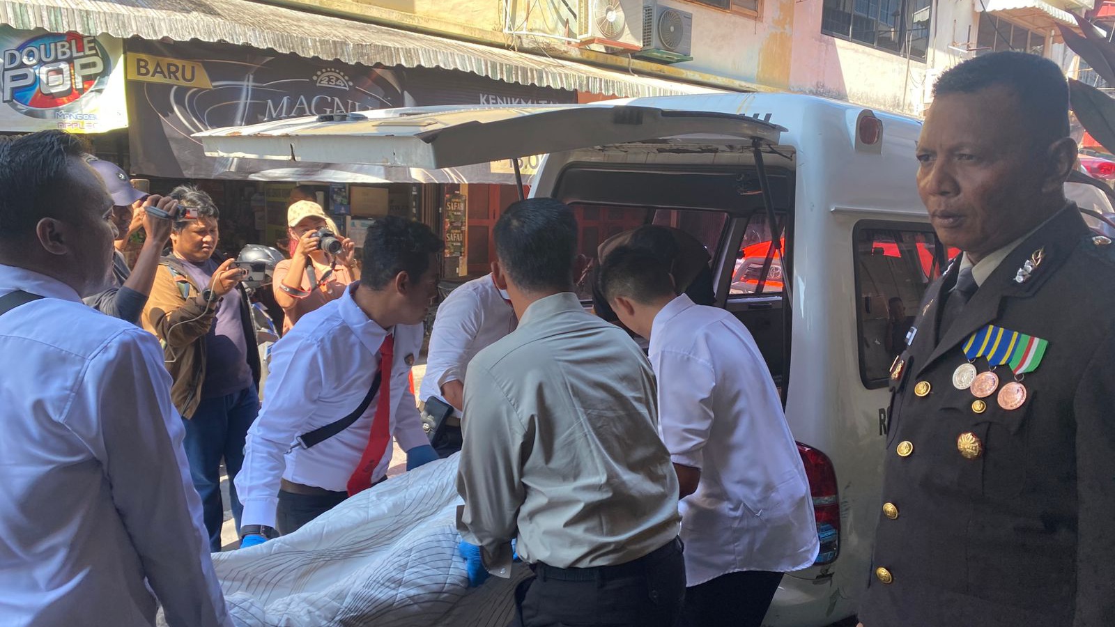 “Saya coba buka paksa dengan kunci cadangan. Saat pintu terbuka, saya lihat korban sudah tergeletak di tempat tidur, hanya mengenakan celana pendek hitam, tidak memakai baju, dan tubuhnya sudah membiru,” ujar Siti.