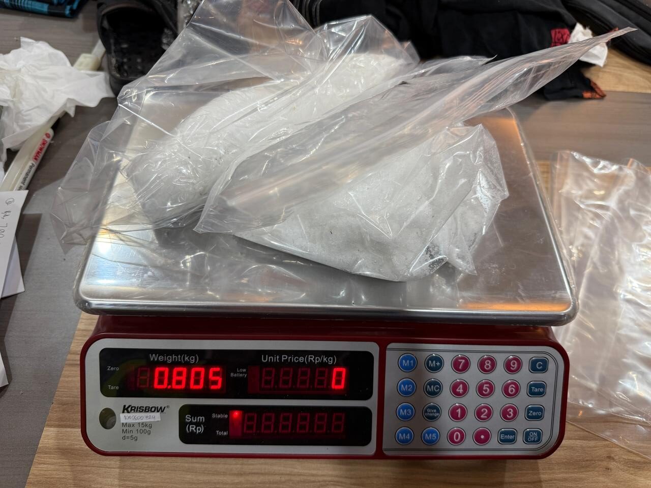 Pelaku berinisial AN (31), yang berprofesi sebagai tukang cat, kedapatan menyembunyikan dua bungkus sabu seberat total 805 gram di dalam sandal yang dikenakannya.