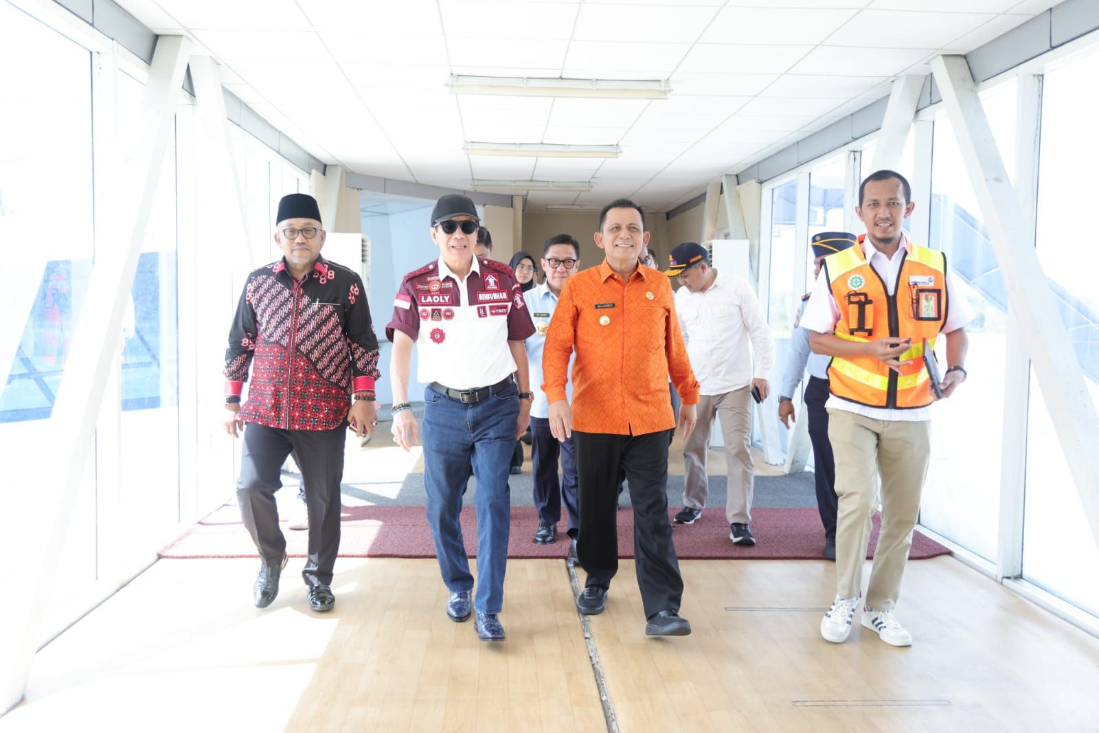 HARIANMEMOKEPRI.COM — Gubernur Kepri Ansar Ahmad, menyambut kedatangan Menteri Hukum dan Hak Asasi Manusia Yasonna H Laoly, di Bandara Raja Haji Fisabilillah, Tanjungpinang, Sabtu (17/2023).