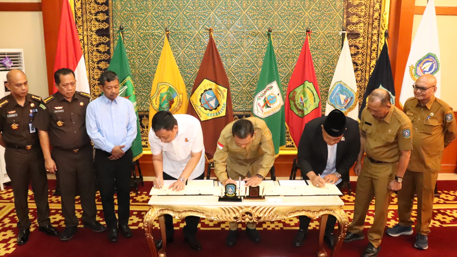 Tiga pimpinan lembaga yang menandatangani perjanjian tersebut adalah Kepala Kejati Kepri Teguh Subroto, Gubernur Kepri H. Ansar Ahmad, dan Ketua DPRD Kepri H. Iman Sutiawan. Adapun nomor perjanjian yang disepakati antara lain: