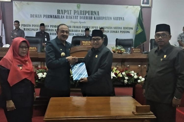 Harian Memo Kepri | Natuna — Wakil Ketua I DPRD Kabupaten Natuna, Daeng Ganda Ramatullah, membuka rapat paripurna penyampaian pendapat akhir fraksi-fraksi DPRD Natuna, tentang rancangan peraturan daerah perubahan rencana pembangunan jangka panjang daerah Kabupaten Natuna tahun 2005-2025, di Gedung Paripurna DPRD Natuna, Rabu (29/2020) malam.
