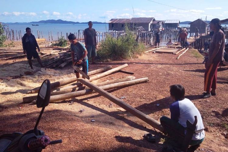 Harian Memo Kepri, LINGGA — Warga Desa Linau secara bergotong royong memperbaiki pelabuhan Desa Linau yang rusak, Minggu (7/2019).