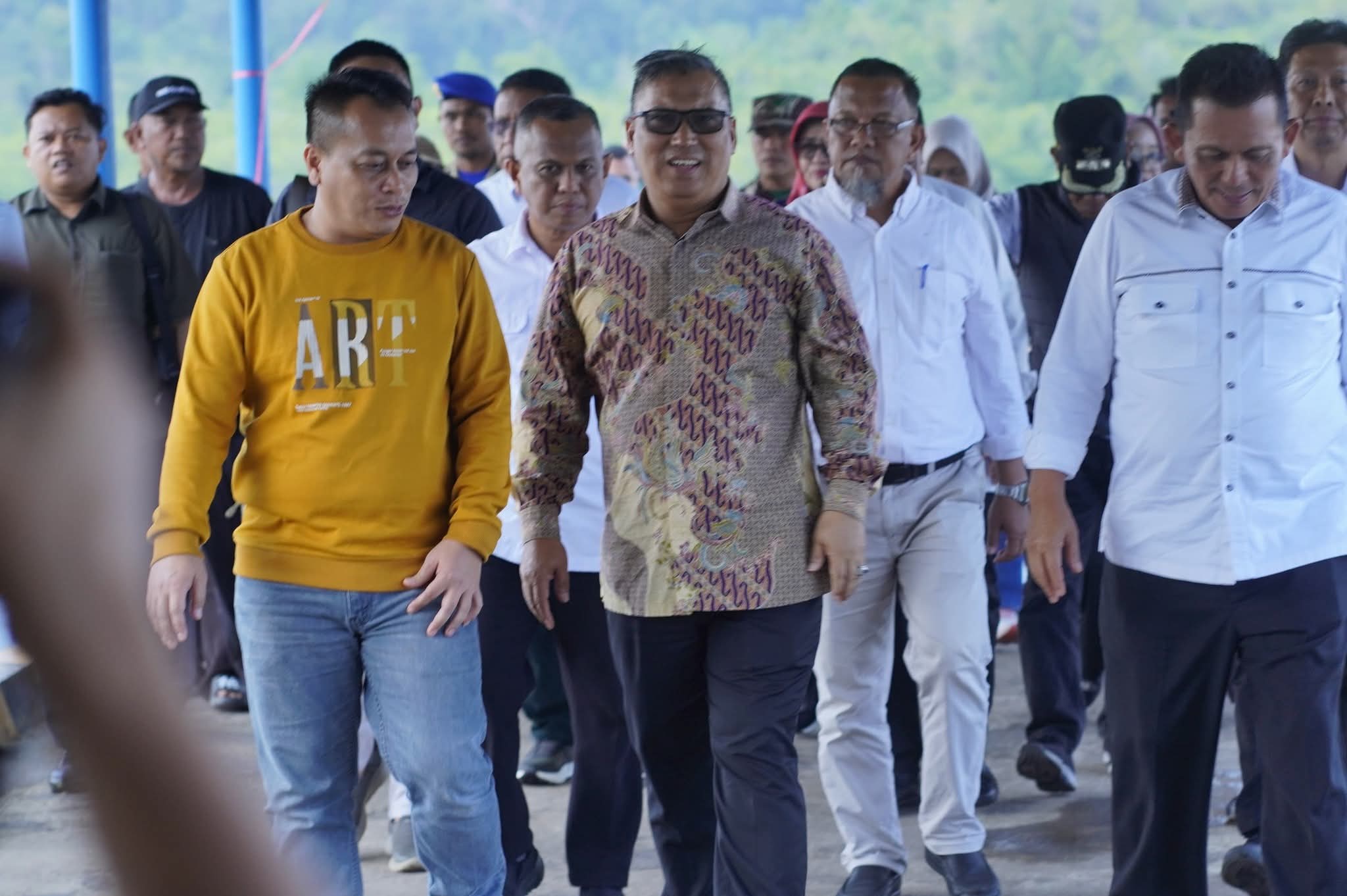 Sebelum prosesi serah terima, Ansar Ahmad beserta jajaran meninjau pembangunan jalan menuju Pelabuhan Roro Penarik.