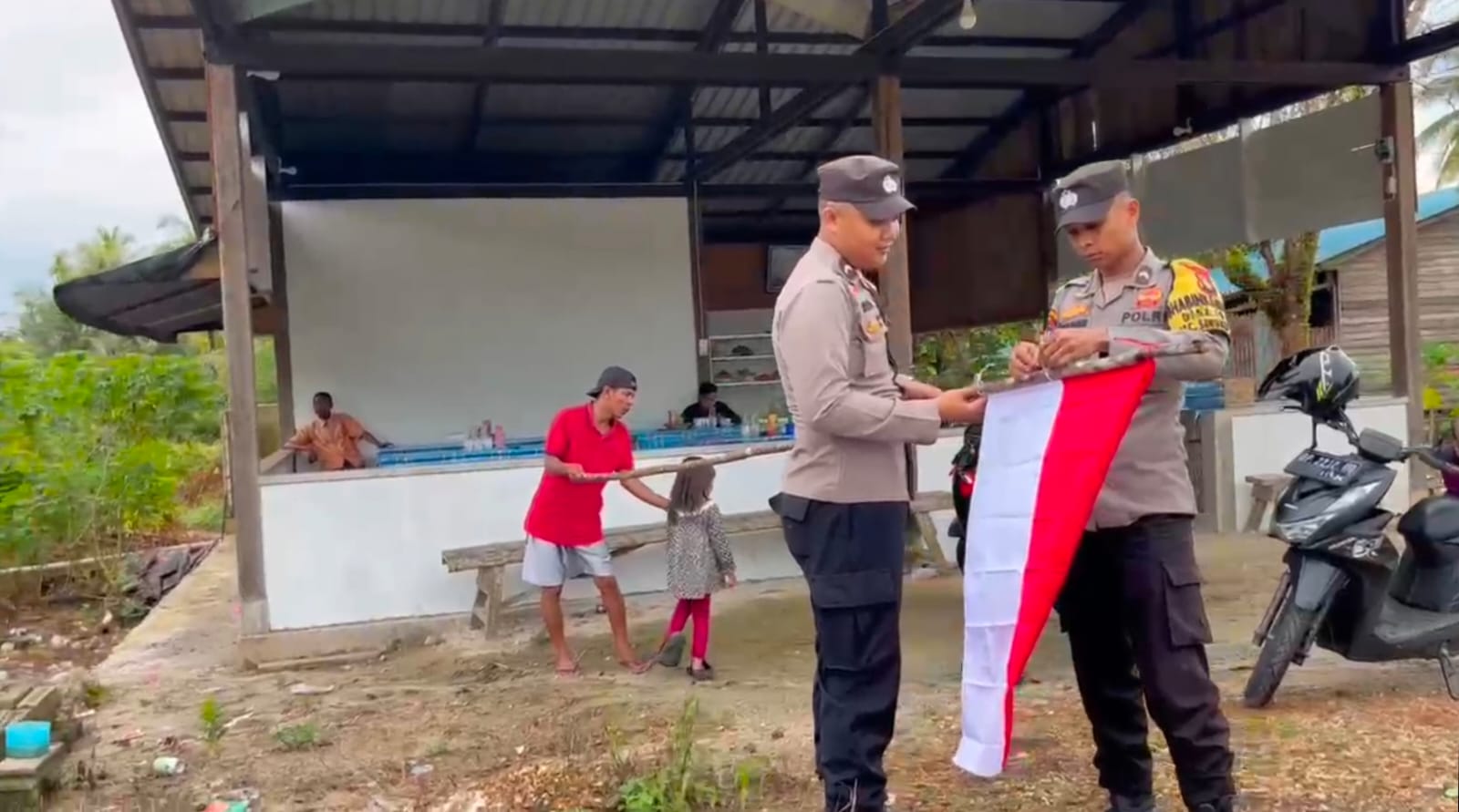 Sebanyak 30 bendera dibagikan langsung kepada warga, dan sebagian di antaranya langsung dikibarkan bersama aparat kepolisian sebagai simbol semangat nasionalisme.