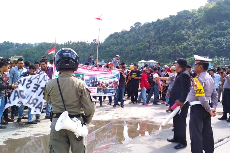 Masa yang tergabung dalam Tim Panitia Pembentukan Pemekaran Kecamatan Kute Siantan (P2K2S) melakukan orasi terkait pemekaran Kecamatan Kute Siantan.