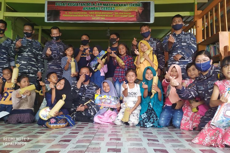 Harianmemokepri.com | Anambas — Komandan Pangkalan Angkatan Laut (Danlanal) Tarempa Letkol Laut (P) Erfan Indra Darmawan S.E.M.Tr.Hanla., M.M bersama anggotanya berkunjung ke Pusat Kegiatan Belajar Masyarakat (PKBM) Anambas Cerdas, Taman Baca Masyarakat (TBM) Arung Hijau yang berada di Desa Tiangau Kecamatan Siantan Selatan, Kabupaten Kepulauan Anambas, Kamis (13/2020).