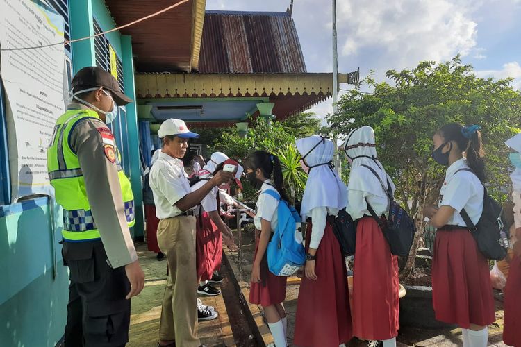 Hari Pertama Masuk Sekolah Siswa-Siswi terapkan Protokol Kesehatan