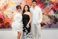 Fuji tampil cantik dengan dress berwarna putih sebagai dress code acara. Aksen bunga besar pada pakaiannya menonjolkan keanggunan, dihiasi detail kelopak bunga yang memberikan kesan mewah dan feminin.