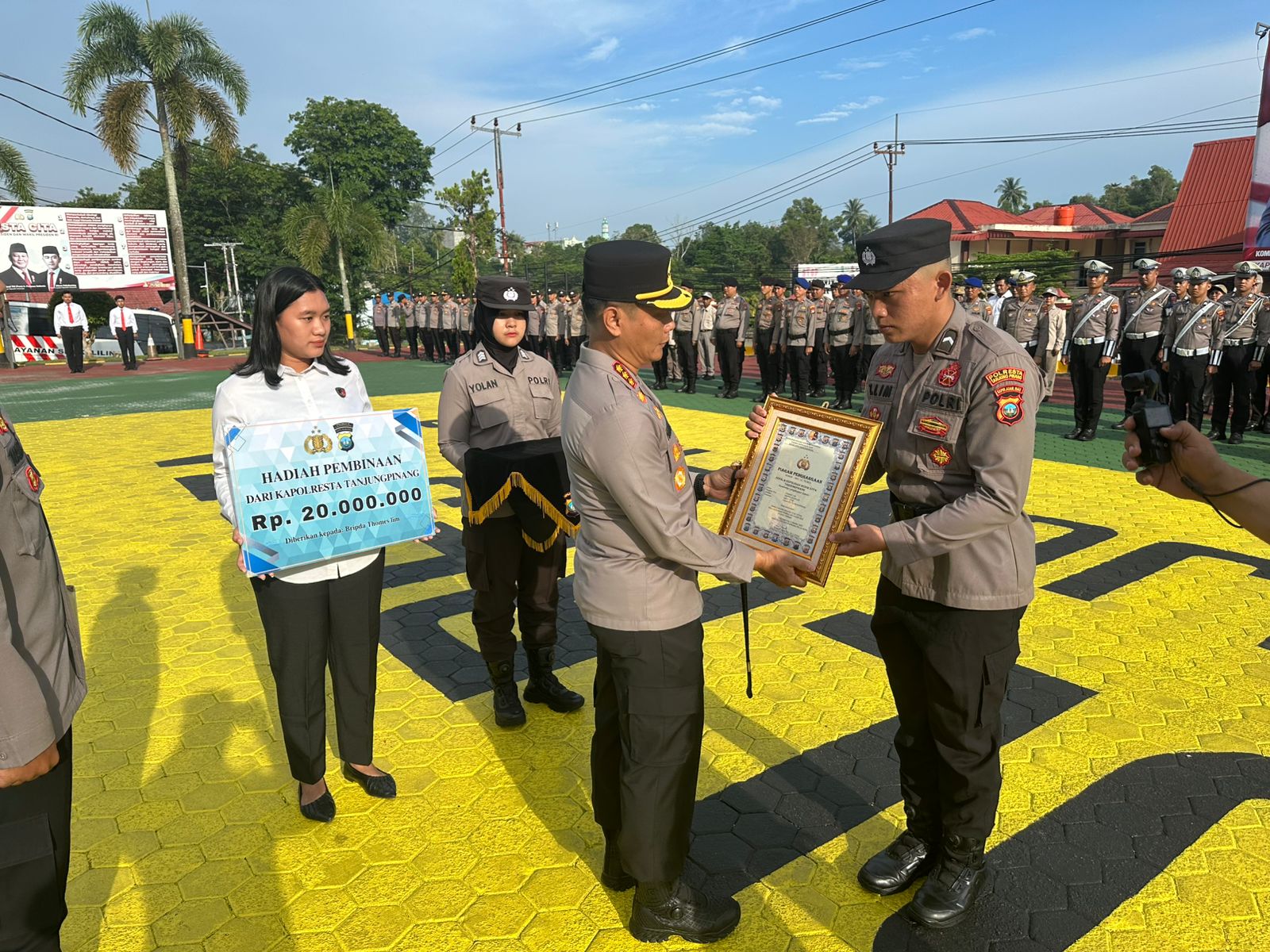 Penghargaan tersebut diberikan saat apel pagi di halaman Mapolresta Tanjungpinang, Senin (6/10/2025).