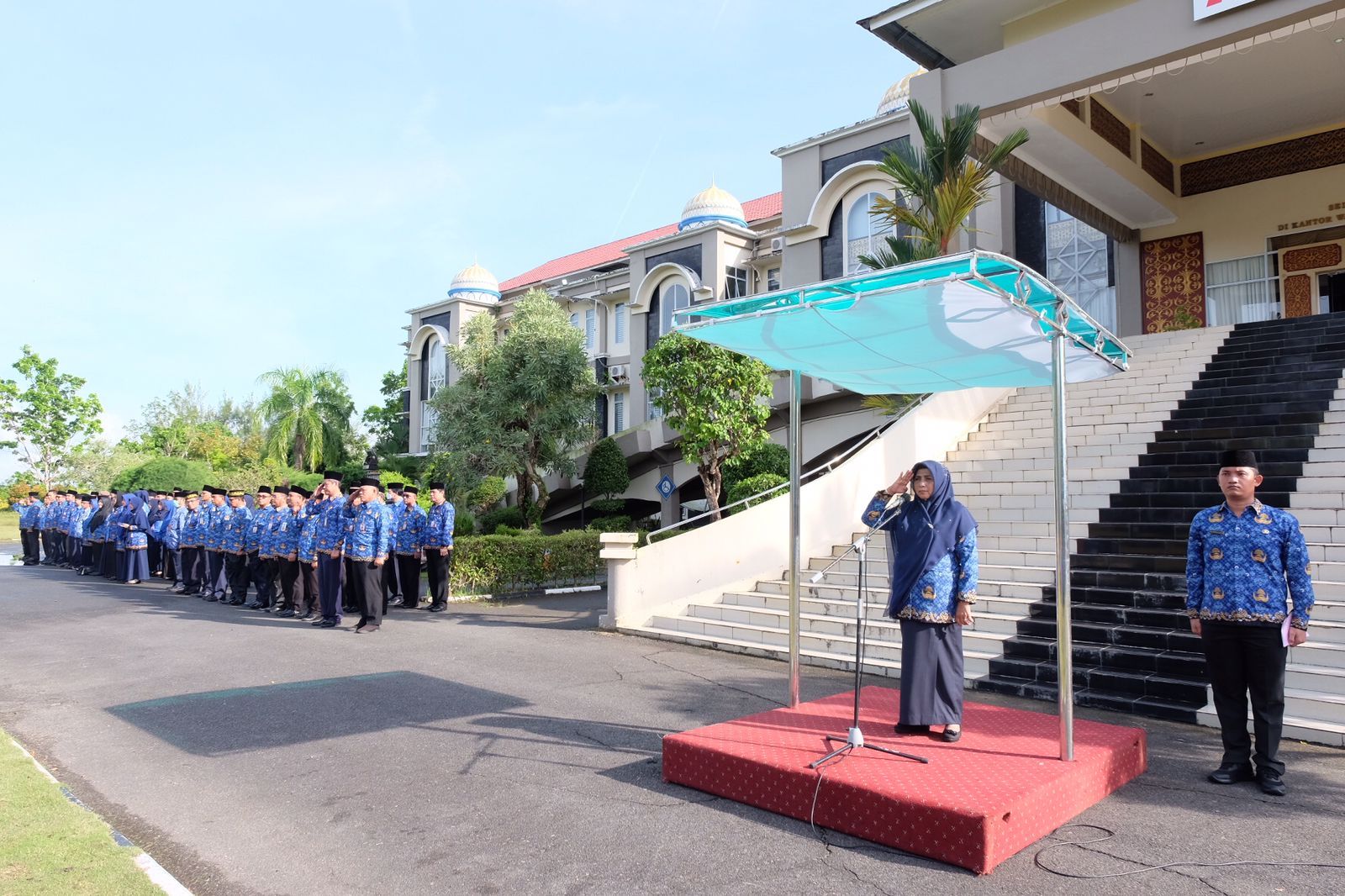 HARIANMEMOKEPRI.COM — Peringati Hari Otonomi daerah ke-27, Pemko Tanjungpinang melaksanakan upacara bendera di halaman Kantor Walikota Tanjungpinang Senggarang. Bertindak sebagai inspektur upacara, Walikota Tanjungpinang, Hj. Rahma yang diikuti seluruh jajaran pegawai dan honorer Pemko Tanjungpinang, Jumat (28/2023) pagi.