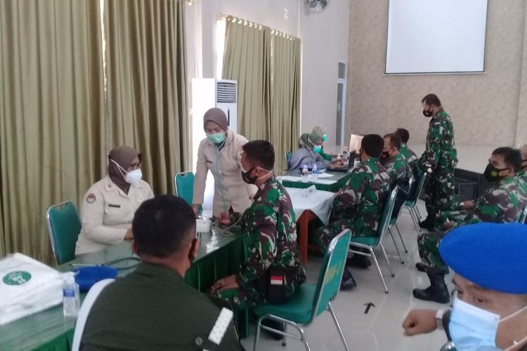 Sebelum divaksinasi, prajurit Korem 033/WP harus melalui tahap -tahap seperti pendaftaran peserta vaksin, pengecekan tekanan darah dan suhu tubuh, screning. Semua tahapan jika bagus baru dilaksanakan Vaksinasi.